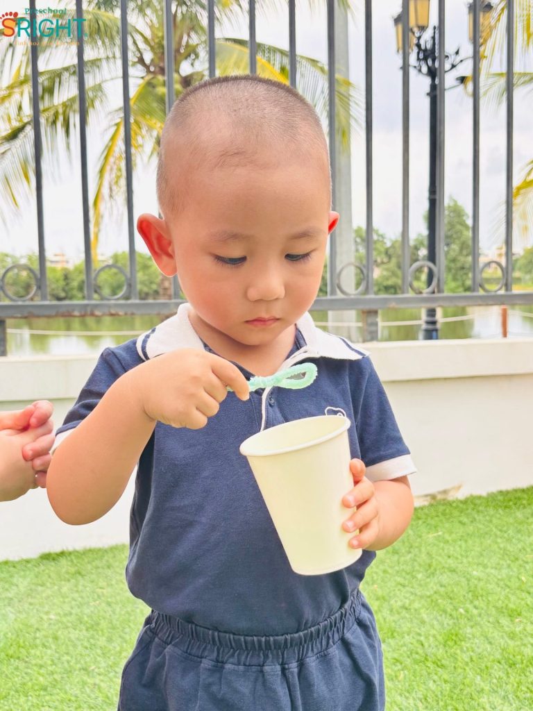 Không chỉ đơn thuần là một trò chơi, hoạt động thổi bong bóng xà phòng mang đến vô vàn cơ hội học tập quý giá cho các con. Sự tò mò được khơi dậy khi các con quan sát sự hình thành, chuyển động và vỡ tan của những quả bong bóng mỏng manh.