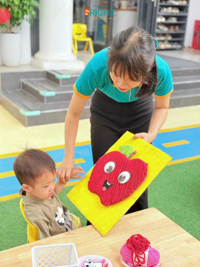 Dưới sân trường thoáng mát và ngập tràn ánh nắng dịu nhẹ, các bạn nhỏ lớp Home đã có một buổi trải nghiệm nghệ thuật đầy thú vị với chủ đề “Quả táo ngộ nghĩnh”. Tại môi trường mầm non SRIGHT, chúng tôi luôn tin rằng nghệ thuật chính là cánh cửa tuyệt vời nhất để trẻ tự do thể hiện sự sáng tạo và khám phá bản thân ngay từ những năm tháng đầu đời.