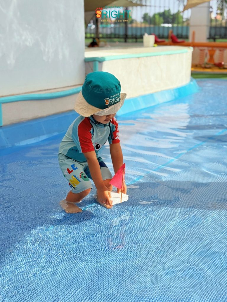 Before entering the water, the children joined their teachers in an outdoor warm-up session with stretching and jumping exercises. Within the SRIGHT preschool environment, we consistently integrate early childhood education elements into every small experience. Activities like splashing water, catching toy fish, or racing boats are more than just play; they help children develop gross motor skills, refine hand dexterity, and improve full-body coordination.