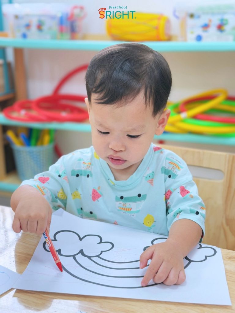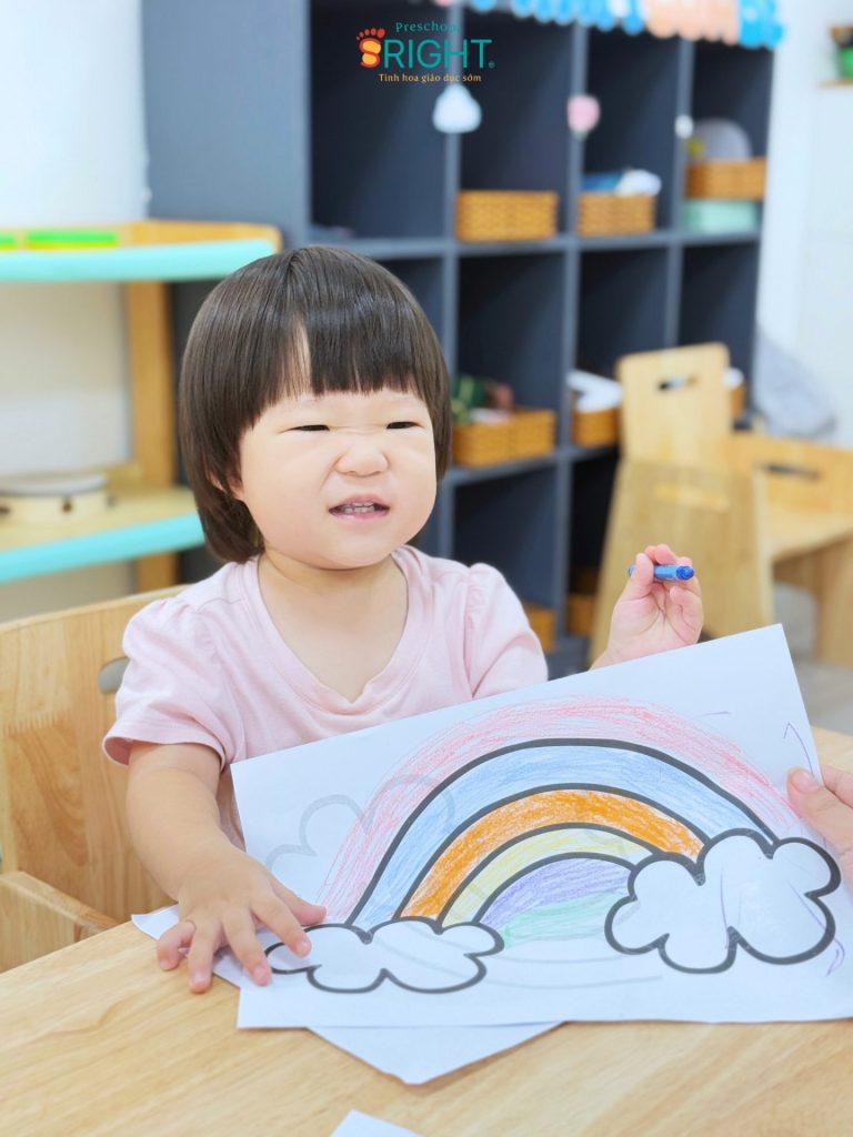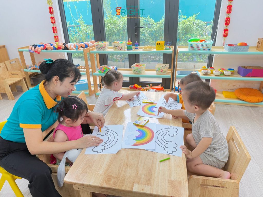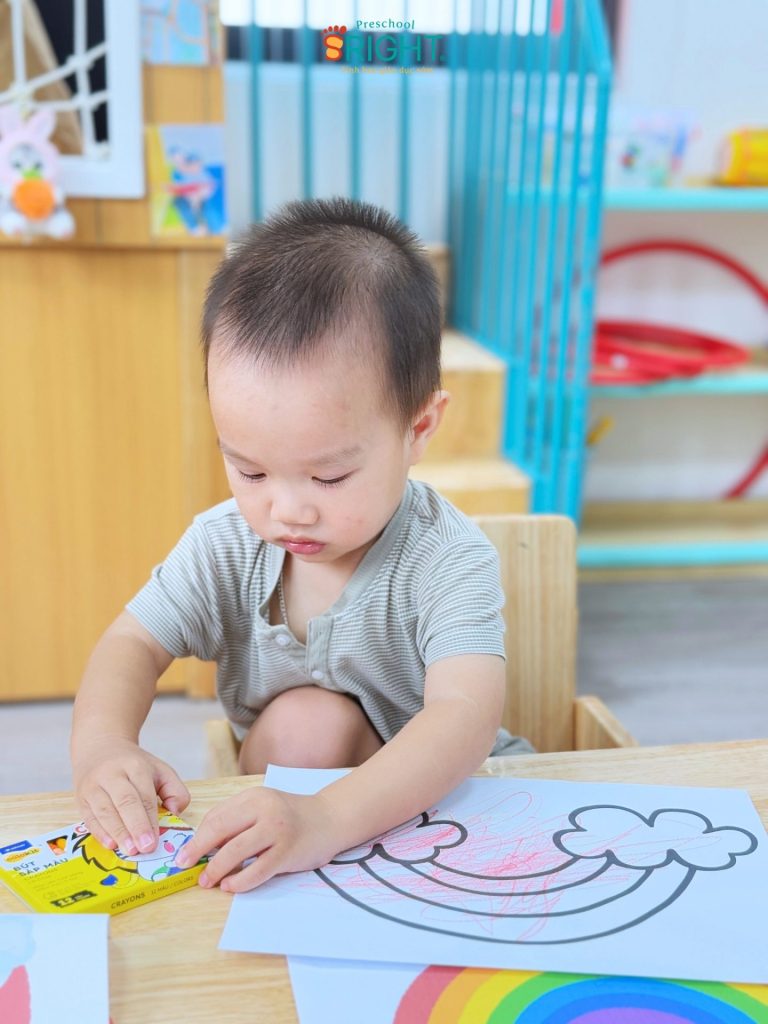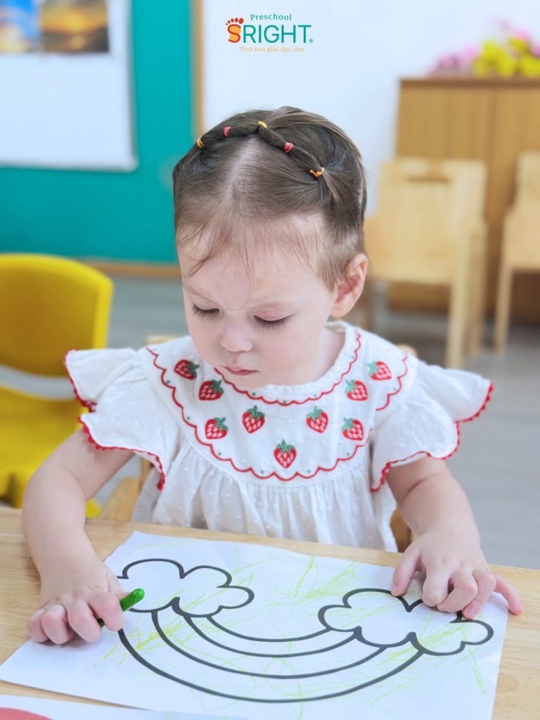 The journey of growth at Sright Preschool is a series of endless “learn through play” days where children are encouraged to explore and respect the natural world. As a reputable preschool in Thu Duc, we are committed to providing a happy educational environment where nature becomes closer and more beloved through every page and every color. We invite parents to admire the focused, adorable, and radiant moments of our Home Class SRIGHTers in today’s lesson to witness the unique difference in thinking and emotion your child receives at Sright Preschool.