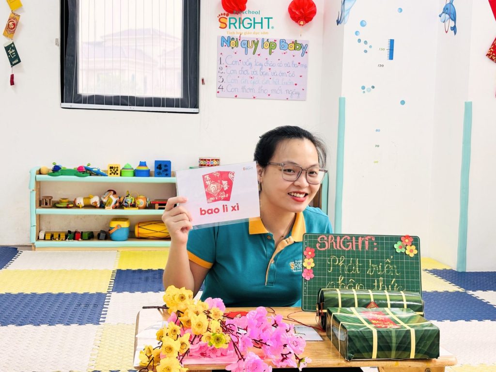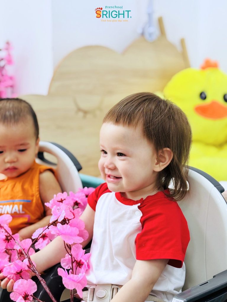 Choosing a reputable early childhood education environment is the most meaningful gift parents can give their children, and Sright Preschool is proud to be the trusted destination in the Thu Duc area. We are committed to providing lessons that are not only rich in knowledge but also filled with meticulous care, ensuring that every day at school is a happy experience for our Baby Class students. We invite parents to admire the innocent moments, curious eyes, and radiant smiles of our Baby SRIGHTers in today’s “Happy Tet” lesson to feel the warmth of Spring spreading within the Sright Preschool family.