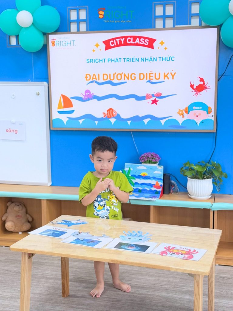The journey of growth at Sright Preschool is a series of exciting experiences where every lesson opens a new horizon for a child’s mind. As a reputable preschool in Thu Duc, we are committed to providing a happy educational environment where nature becomes closer and more beloved than ever. We invite parents to admire the focused moments and the radiant joy of our City Class SRIGHTers in the “Magical Ocean” lesson to witness the unique cognitive and emotional maturity your child achieves at Sright Preschool.