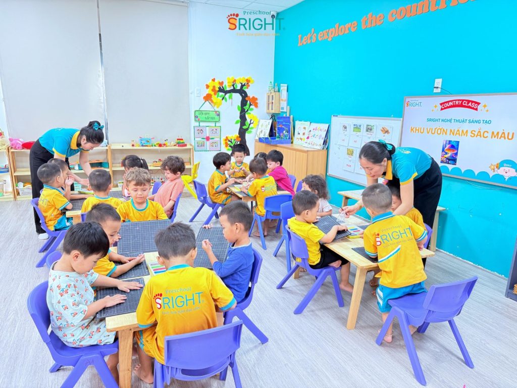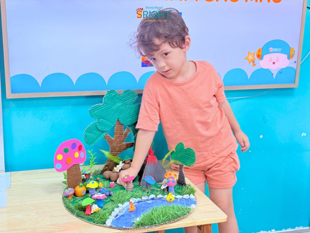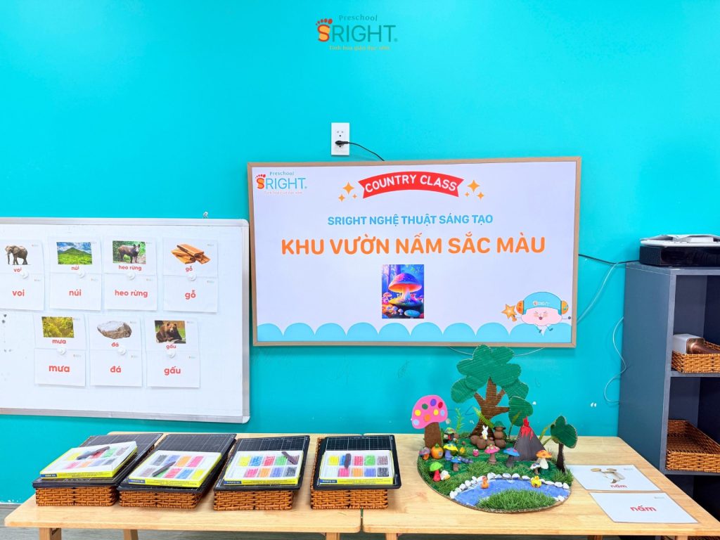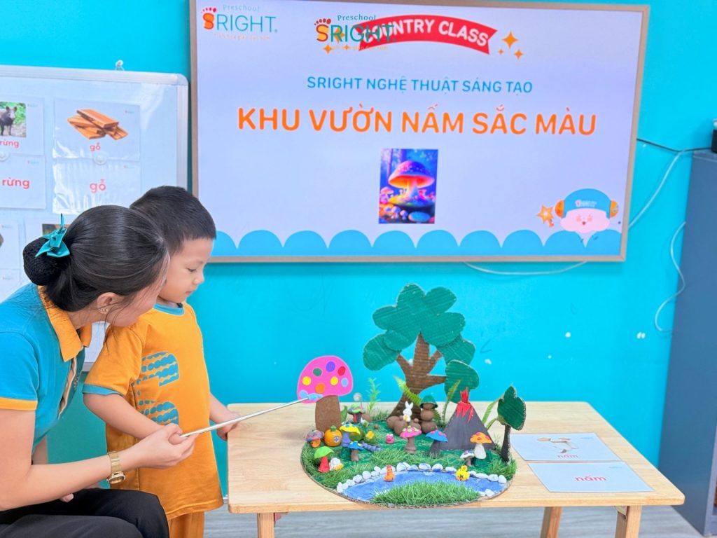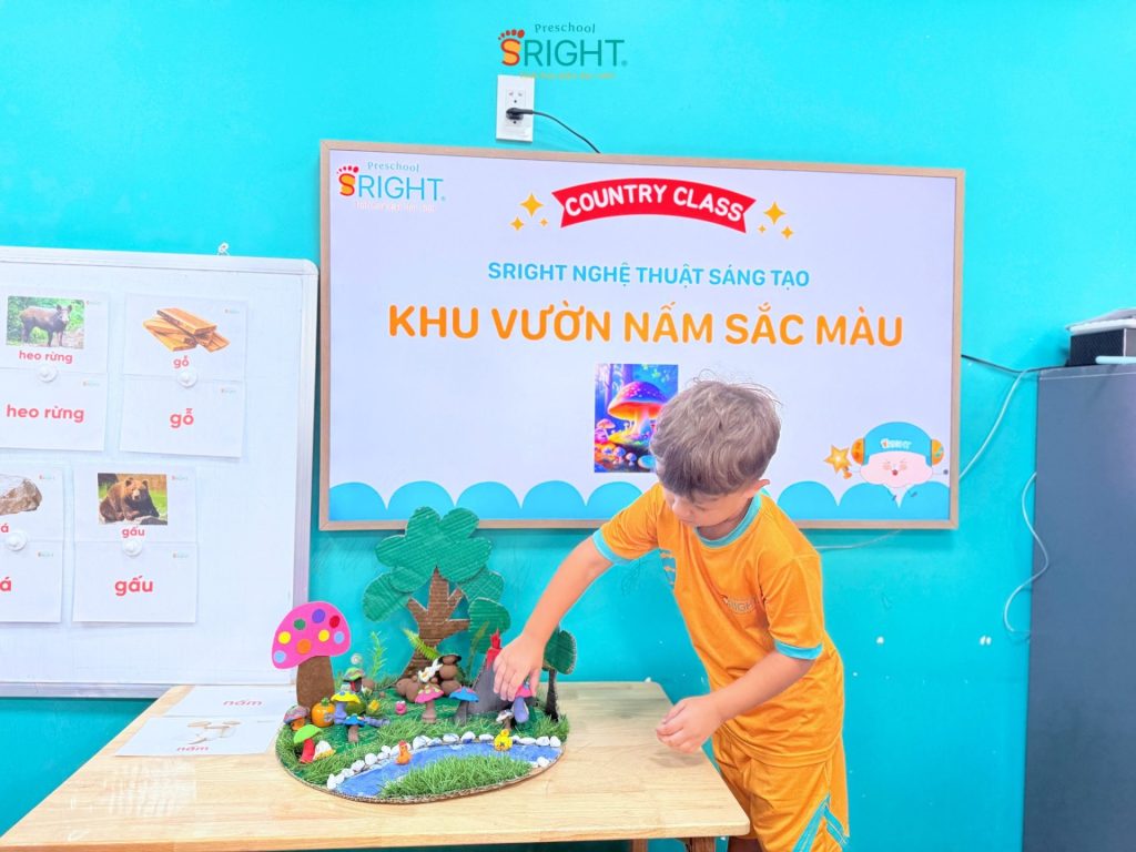 The journey of growth at Sright Preschool is a series of endless “learn through play” days, where every piece of clay can become a magical work of art. As a reputable preschool in Thu Duc, we are committed to providing a happy educational environment where every innocent moment of a child is nurtured and encouraged. We invite parents to admire the brilliant “Colorful Mushroom Garden” of our Country Class SRIGHTers to witness the remarkable growth and infinite creative passion your child receives every day at Sright Preschool.