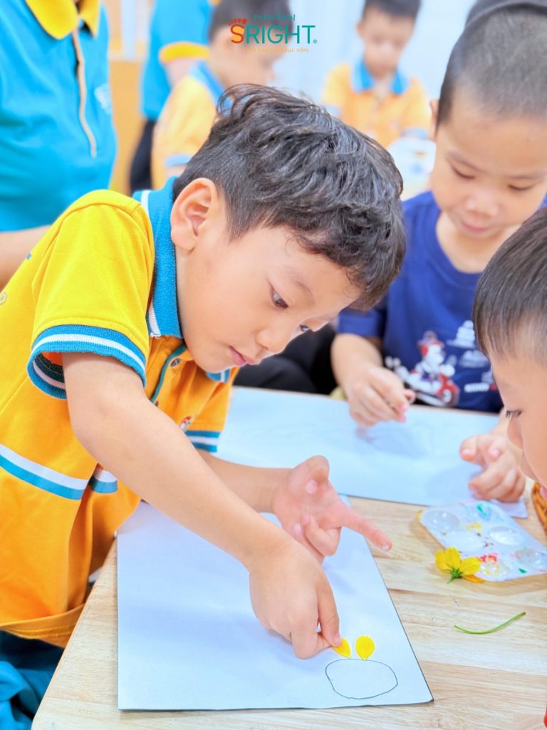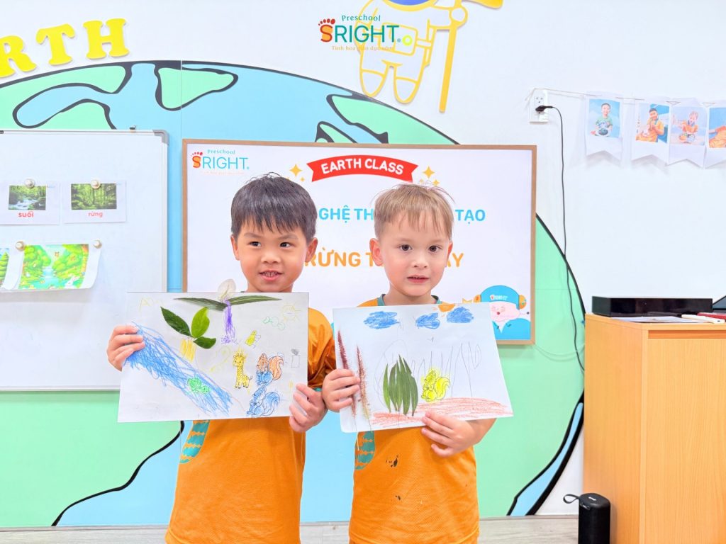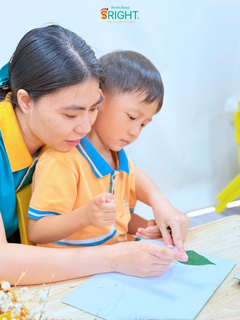 The journey of growth at Sright Preschool is a series of endless “learn through play” days, where even a dry leaf can tell a brilliant story. As a reputable preschool in Thu Duc, we are committed to providing a happy educational environment where children are encouraged to express their personal identity and nurture a deep love for nature. We invite parents to admire the passionate moments and proud smiles of our Earth Class SRIGHTers as they complete their “Leaf Forests” to witness the remarkable growth and infinite creative potential of your children at Sright Preschool.