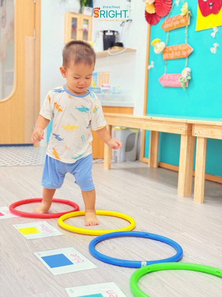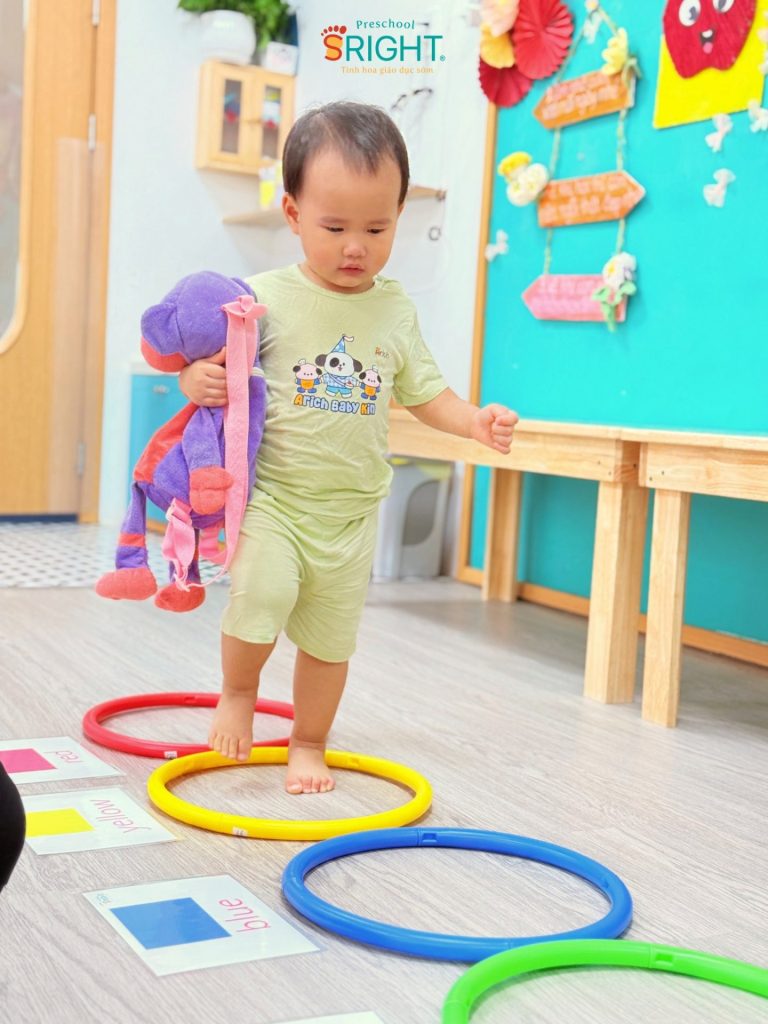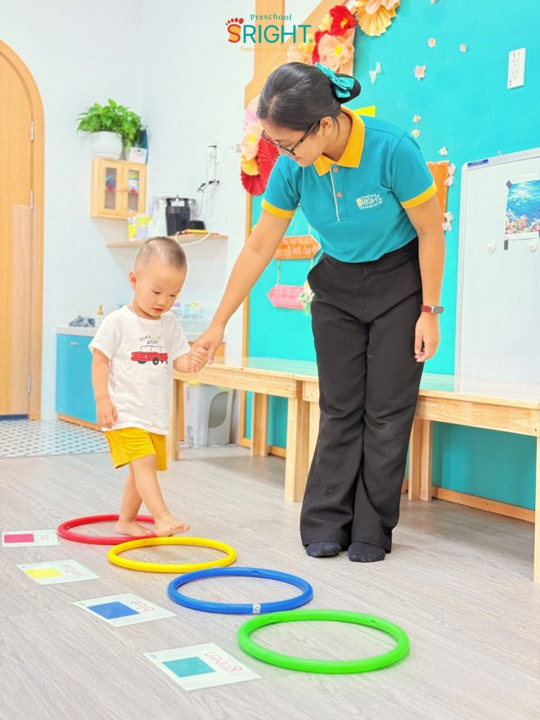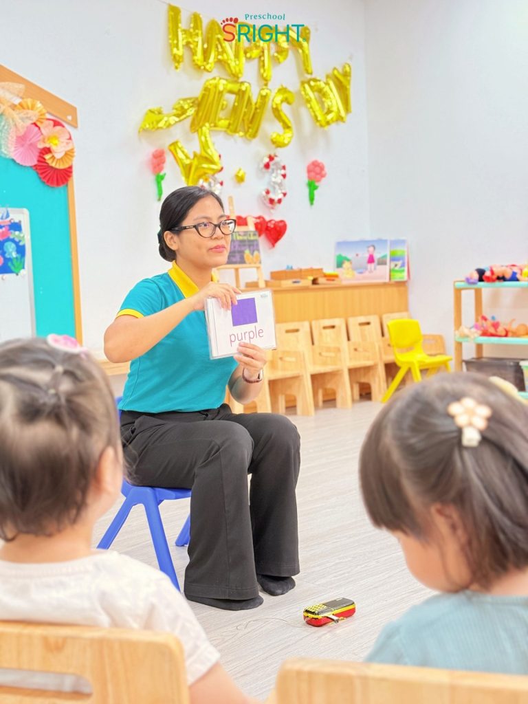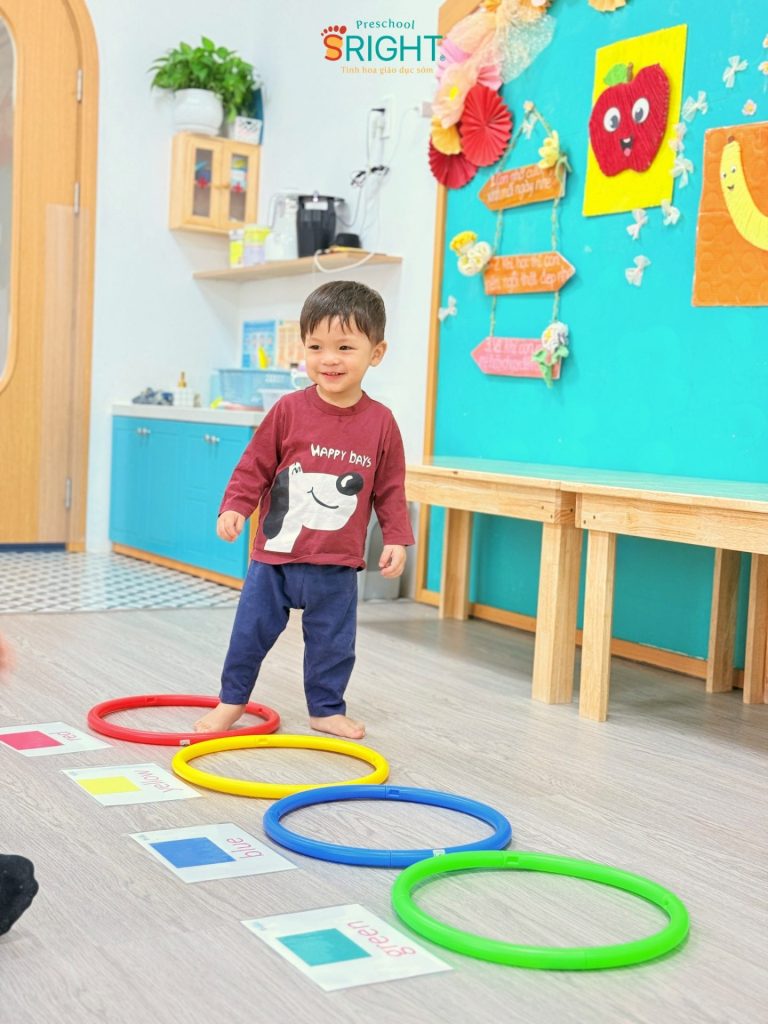 At Sright Preschool, a premier preschool in Thu Duc, we understand that a child’s brain during the “golden window” has an incredible capacity for whole-pattern photographic memory. In the session with Teacher Frahn, right brain activation methods were maximized through a dynamic Flash Card system. Instead of using electronic screens, children refined their observation and rapid reflex skills with high-speed cards. Daily listening and sound recognition help the brain form high-quality neural connections in the language centers, allowing them to memorize color vocabulary naturally and sustainably.