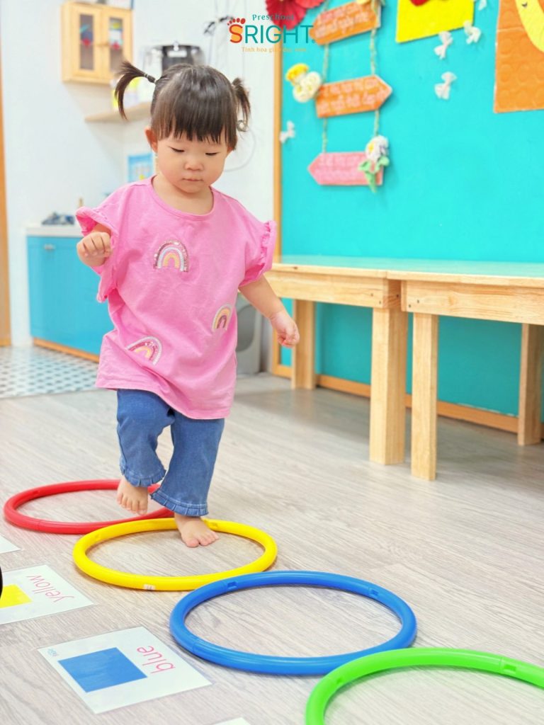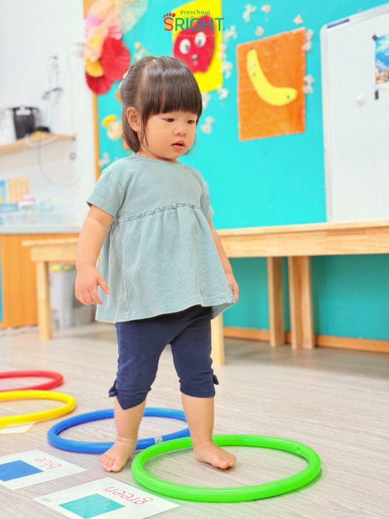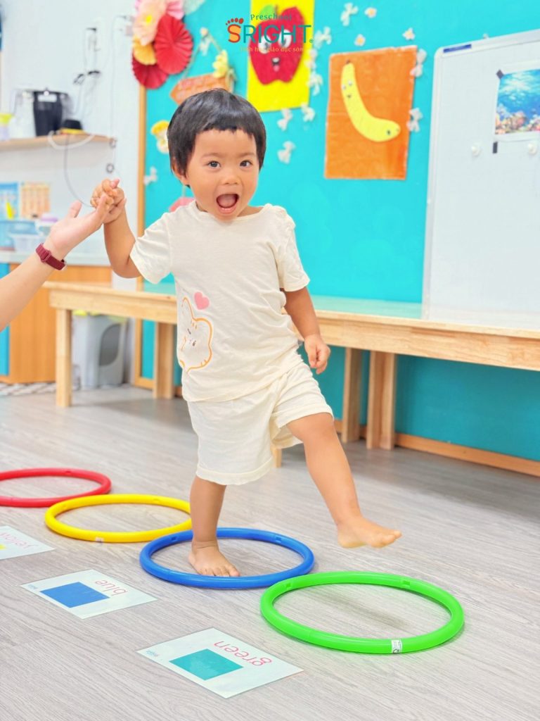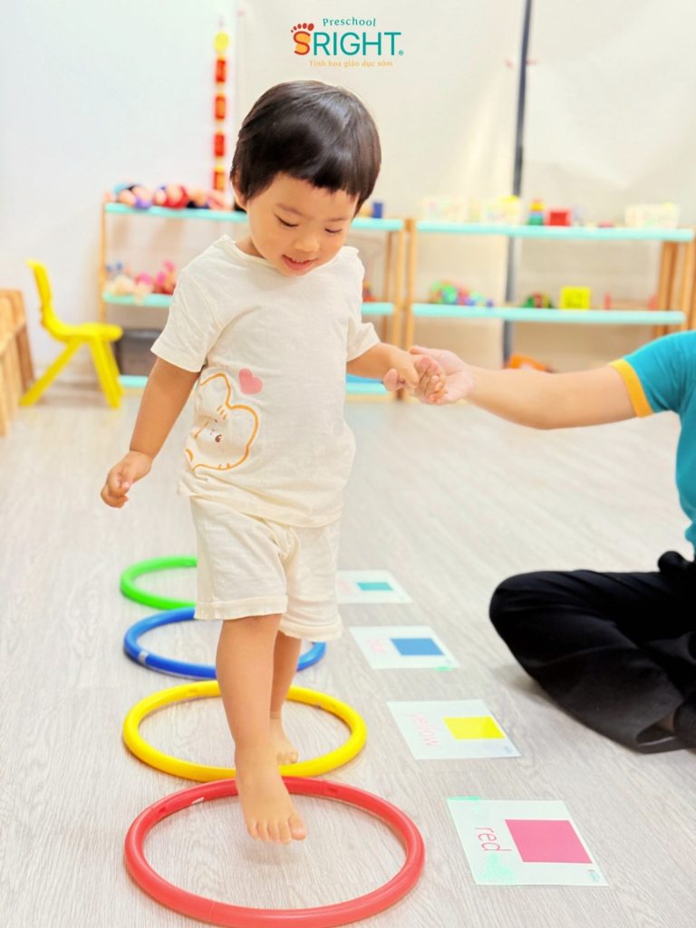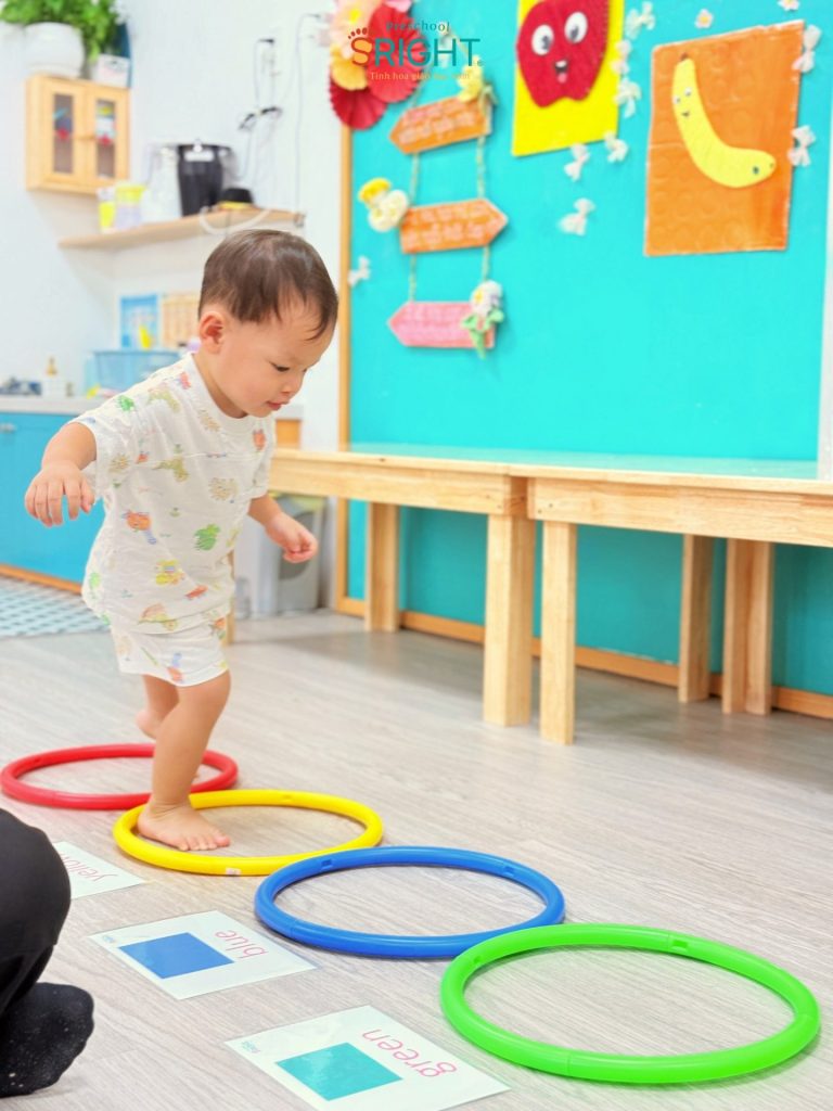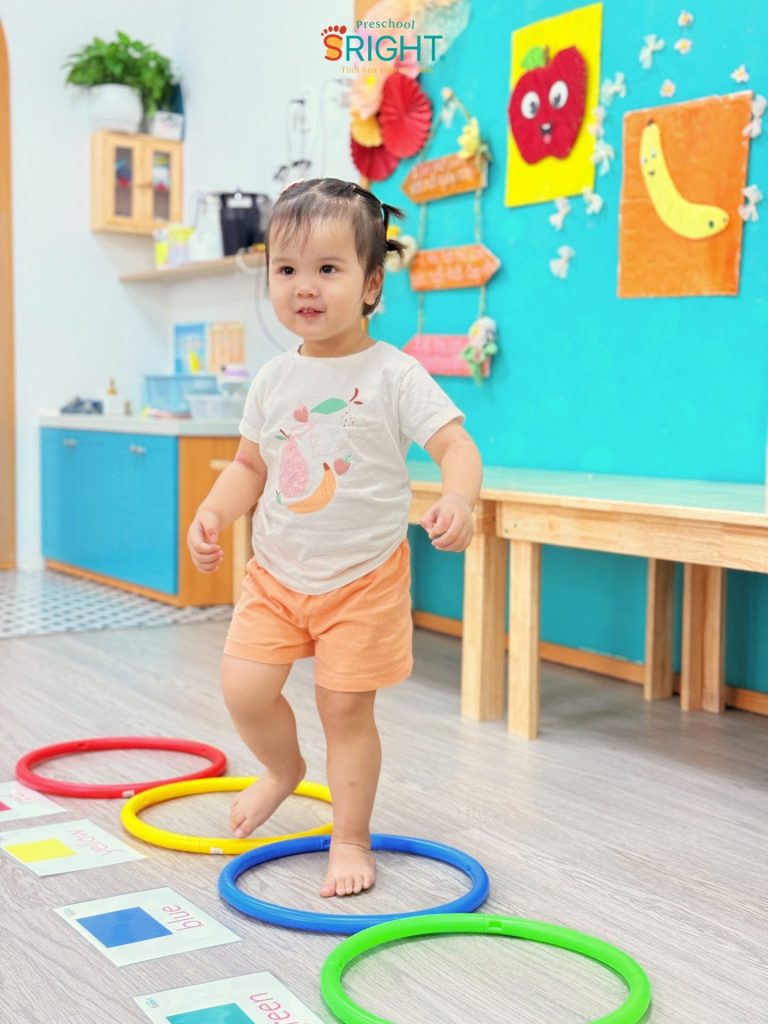At Sright Preschool, a premier preschool in Thu Duc, we understand that a child’s brain during the “golden window” has an incredible capacity for whole-pattern photographic memory. In the session with Teacher Frahn, right brain activation methods were maximized through a dynamic Flash Card system. Instead of using electronic screens, children refined their observation and rapid reflex skills with high-speed cards. Daily listening and sound recognition help the brain form high-quality neural connections in the language centers, allowing them to memorize color vocabulary naturally and sustainably.