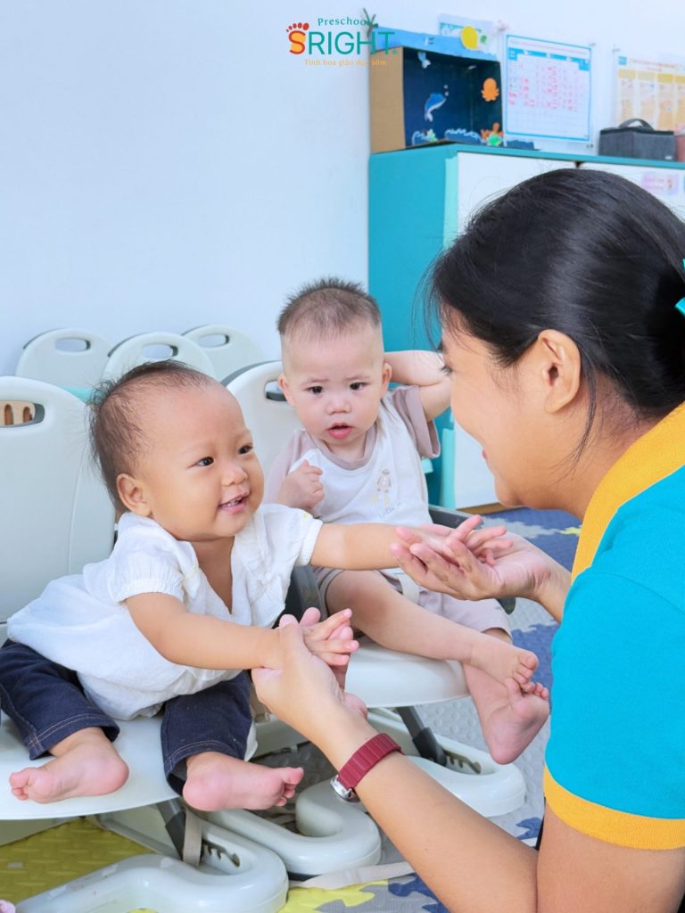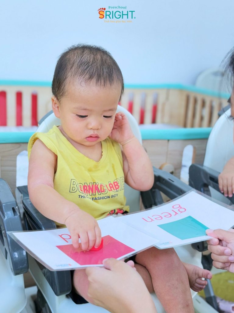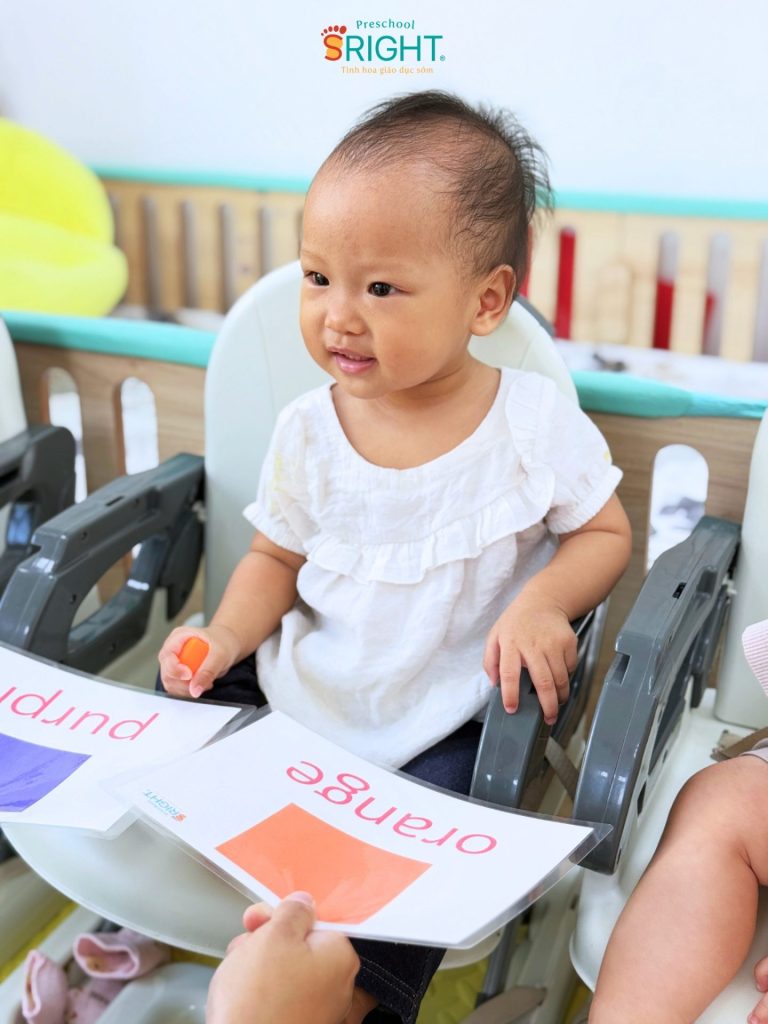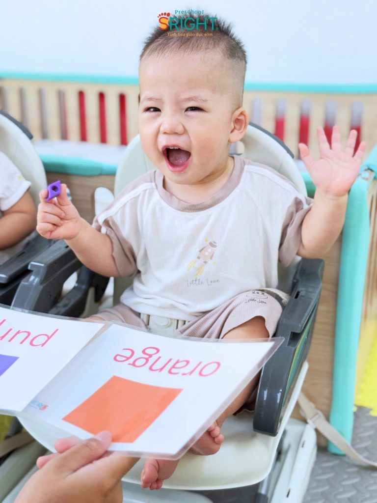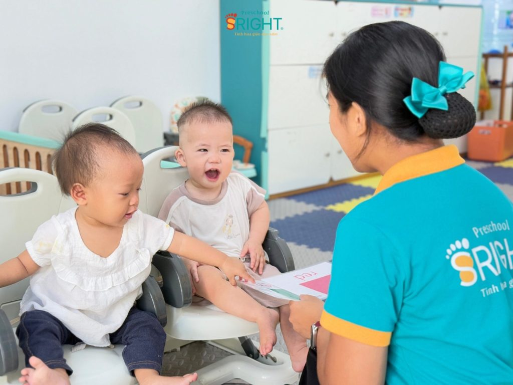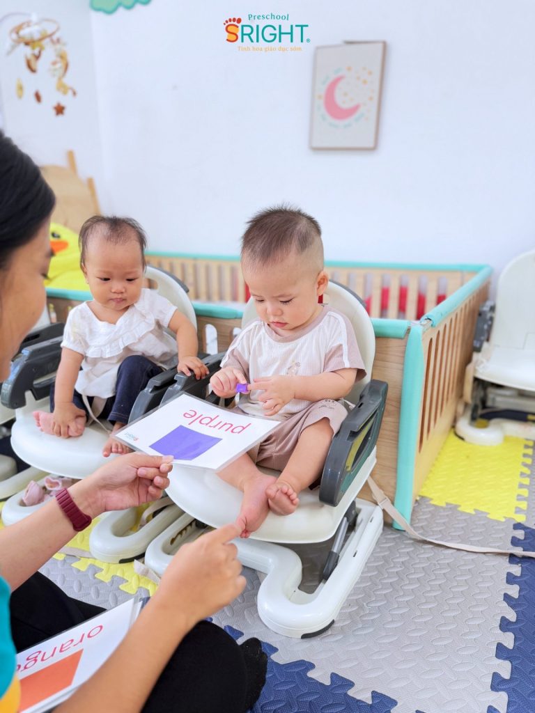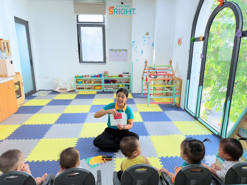 At Sright Preschool, a premier preschool in Thu Duc, we understand that the period under one year of age is the “golden window” for auditory and visual development. In the PF2B sessions, our Baby Class students interact directly with foreign teachers every day. This method focuses on right brain activation, allowing children to recognize whole images and sounds as patterns rather than through complex logical processing. Scientific high-speed flashing of cards helps the brain form deep, high-quality neural connections in the language centers, helping infants absorb English as a second language in a loving environment.