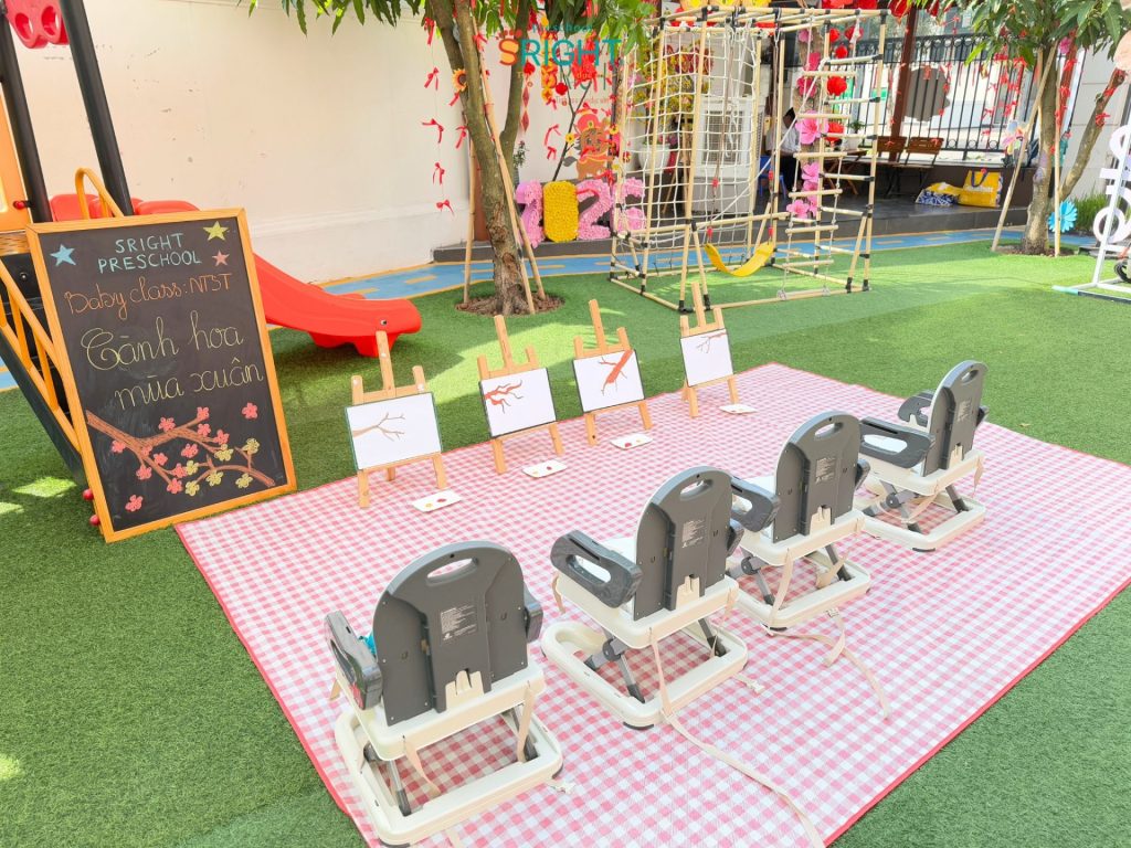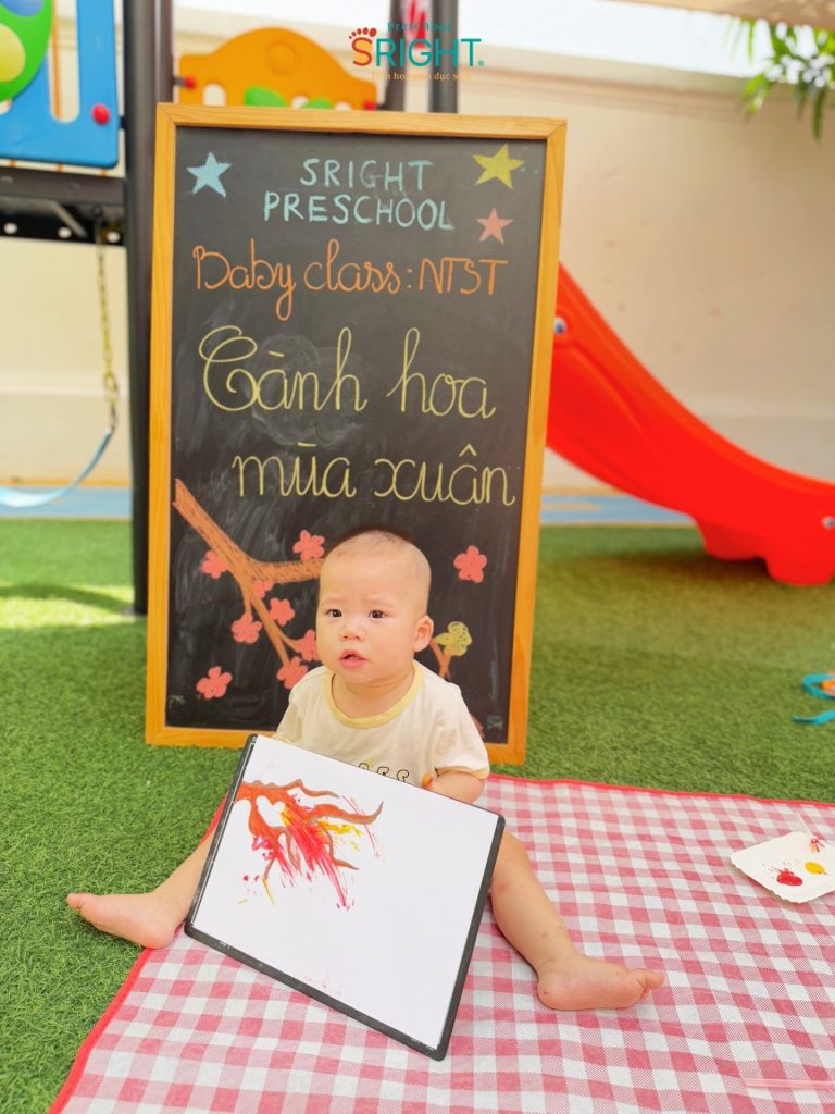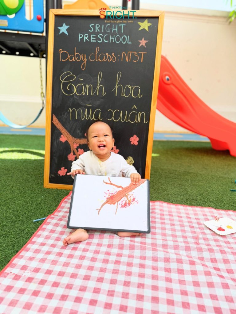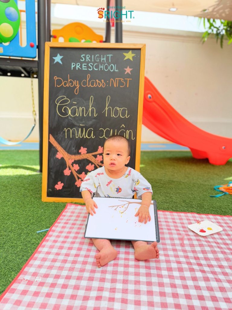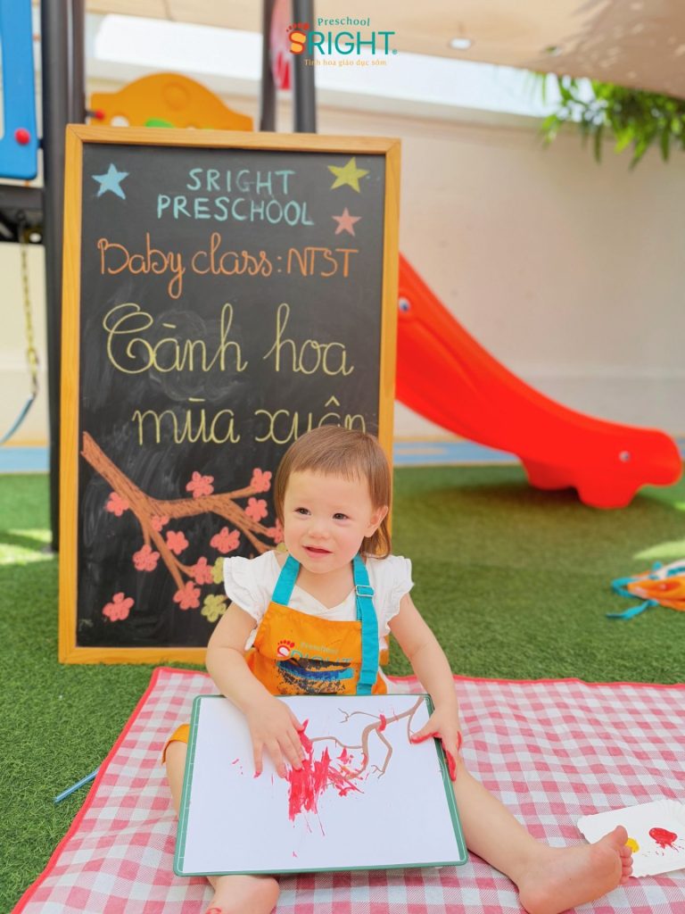 The journey of growth at Sright Preschool is a loving connection between the school and the family, where every day at school is a new journey of discovery. As a reputable preschool in Thu Duc, we are committed to providing a happy educational environment where children are not only taught but also cherished for every small emotional milestone. We invite parents to admire the precious moments, curious eyes, and radiant smiles of our Baby SRIGHTers in today’s “Spring Blossoms” lesson to feel the beauty of growing up at Sright Preschool
