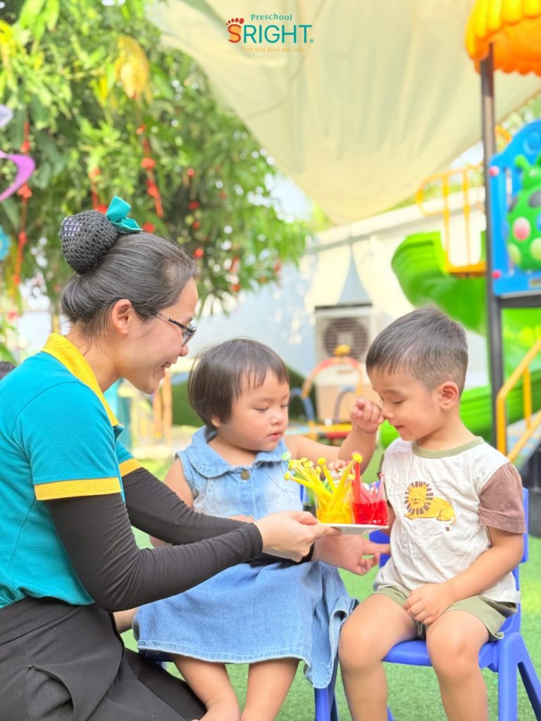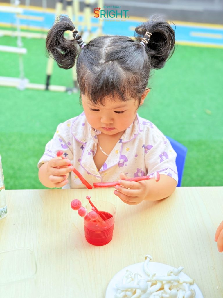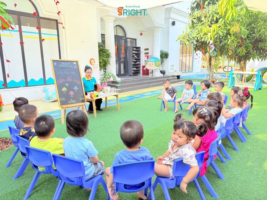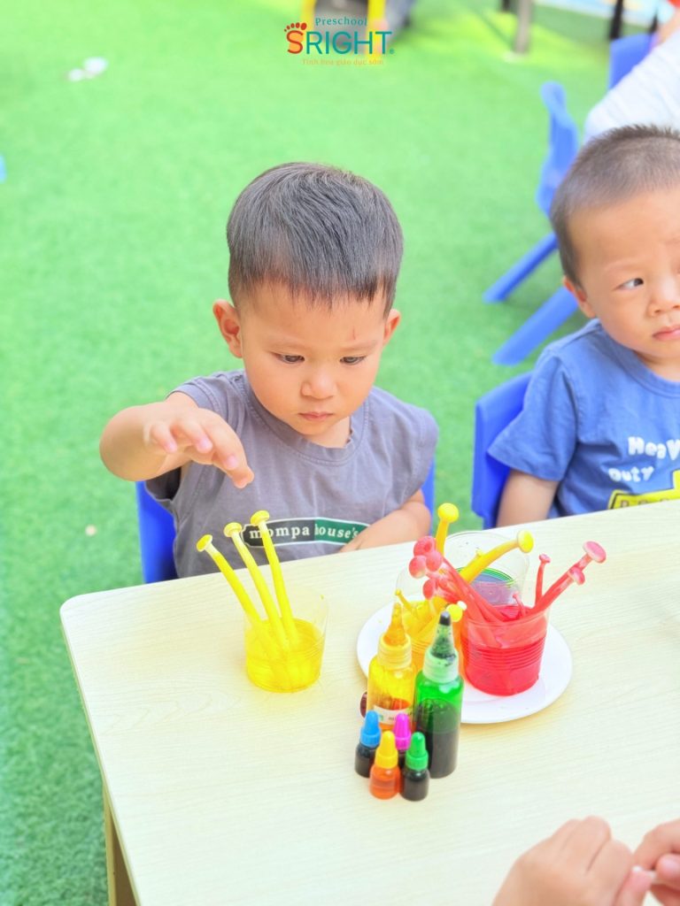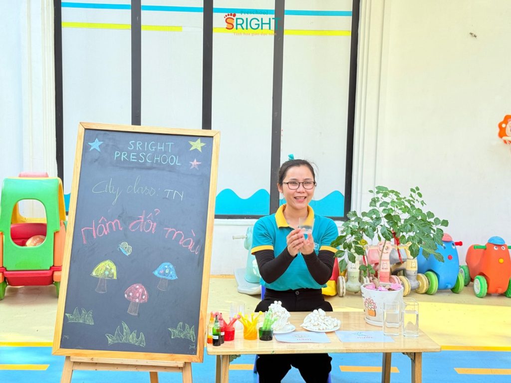 The journey of growth at Sright Preschool is a series of endless “learn through play” days, where every simple phenomenon becomes an inspiring lesson. As a reputable preschool in Thu Duc, we are committed to providing a happy educational environment where children are free to explore and express their personal identities. We invite parents to follow the sparkling eyes and enthusiasm of our City Class SRIGHTers in today’s “Color-Changing Mushroom” experiment to witness the remarkable growth and infinite creative potential of your children at Sright Preschool.