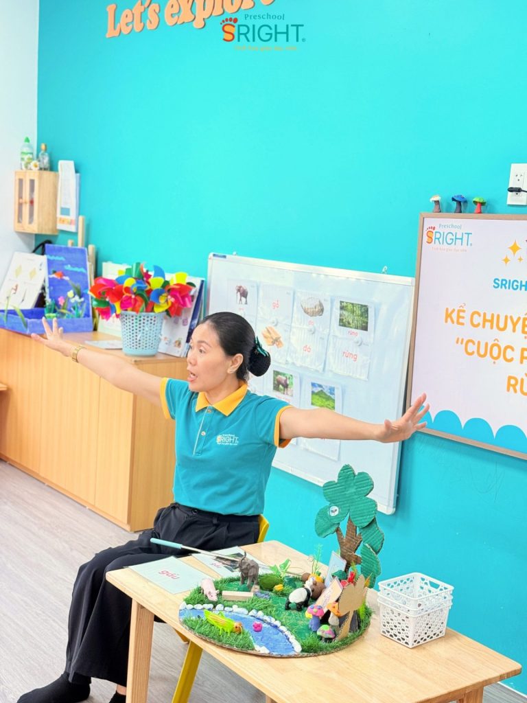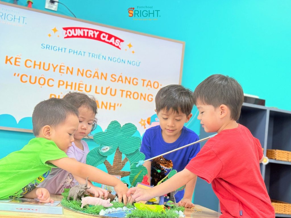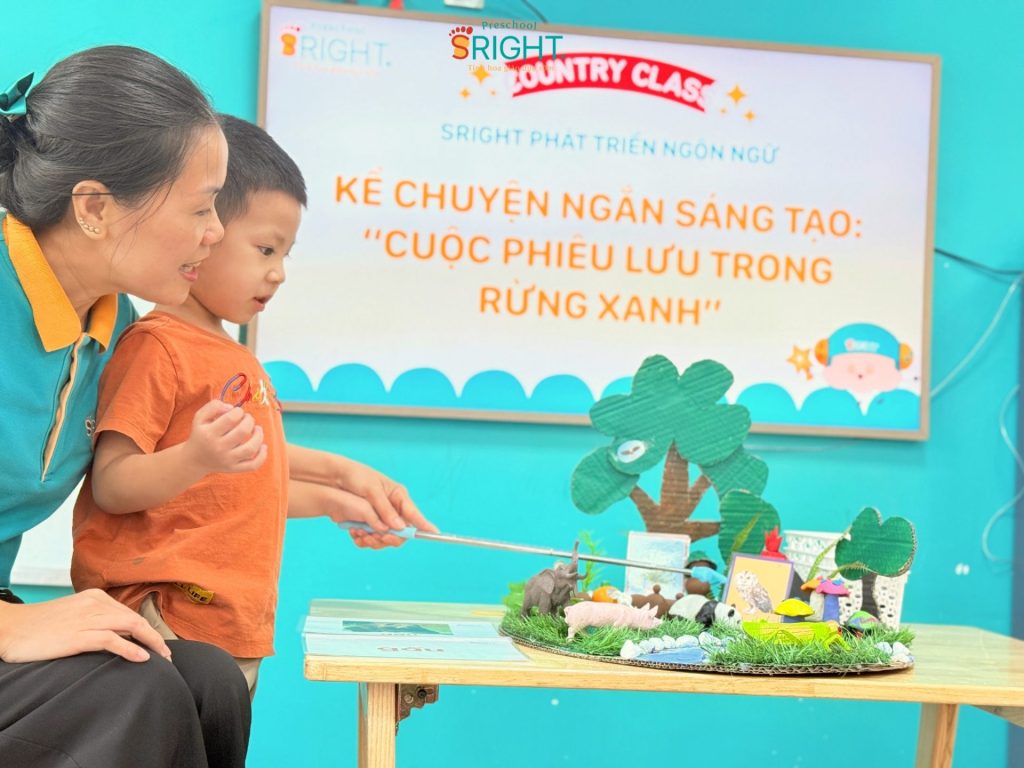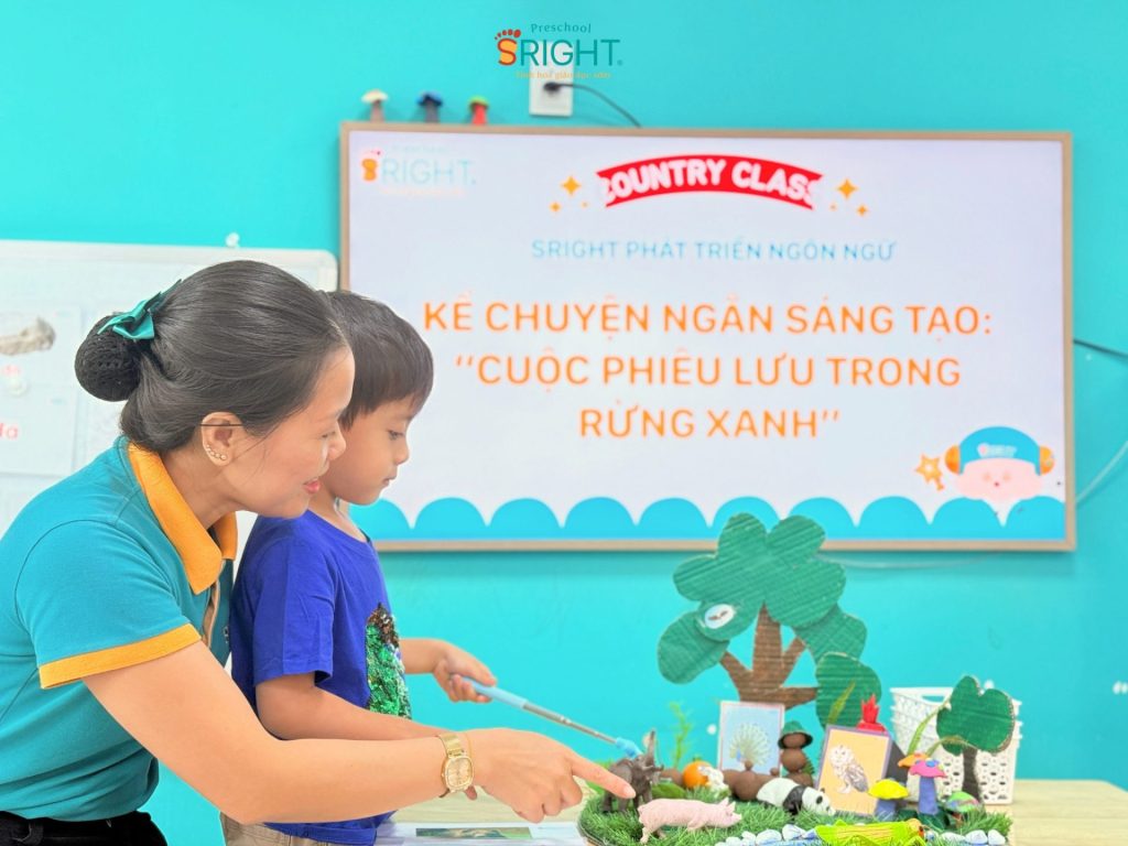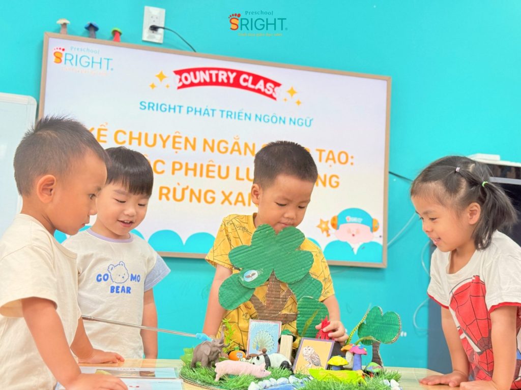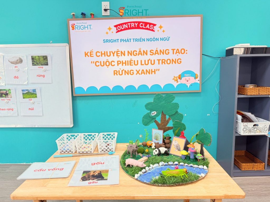 The journey of growth at Sright Preschool is a place where every language lesson opens a new horizon, helping children know how to speak, dare to speak, and love expressing themselves. As a reputable preschool in Thu Duc, we are committed to providing a scientific curriculum that helps children build a solid language and thinking system. We invite parents to follow the enthusiasm and confident progress of our Country Class SRIGHTers in today’s “Green Forest” story to witness the superior educational value and dedication that the staff at Sright Preschool pours into your child’s future.