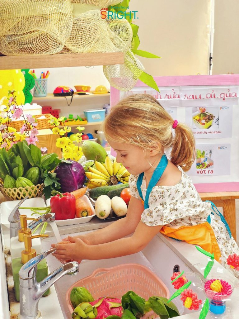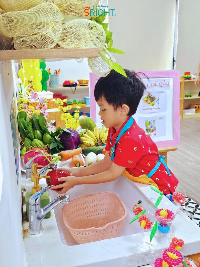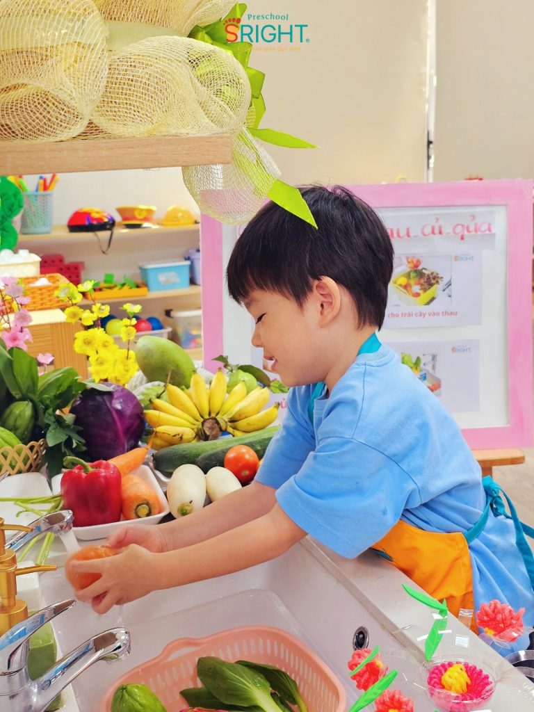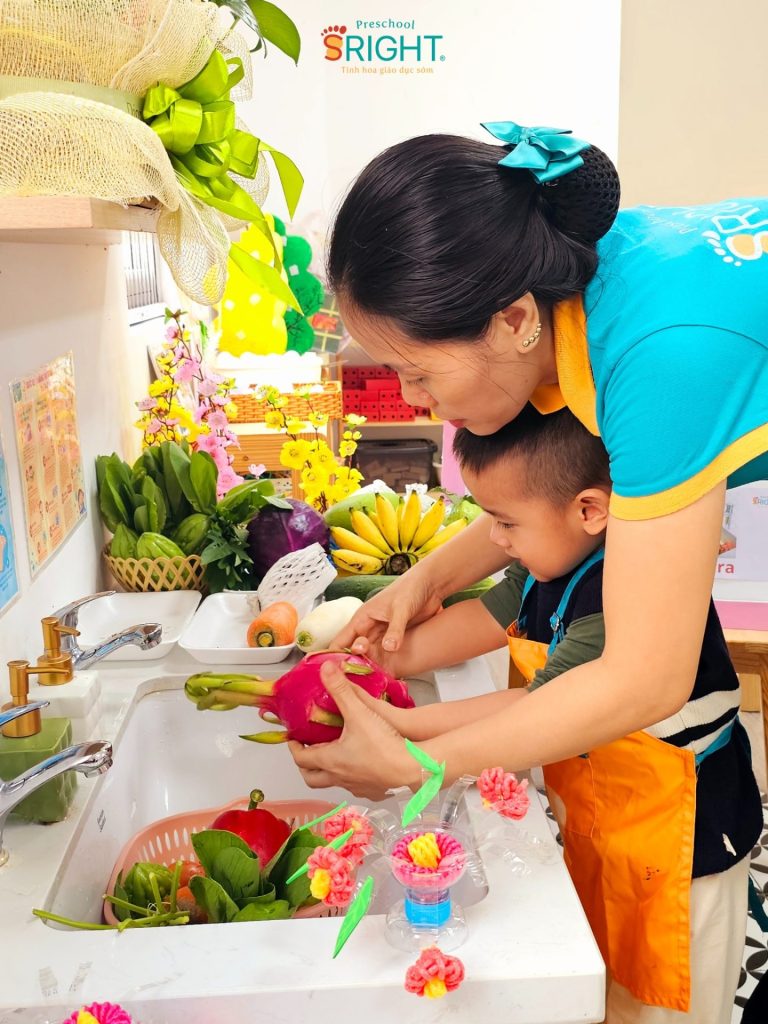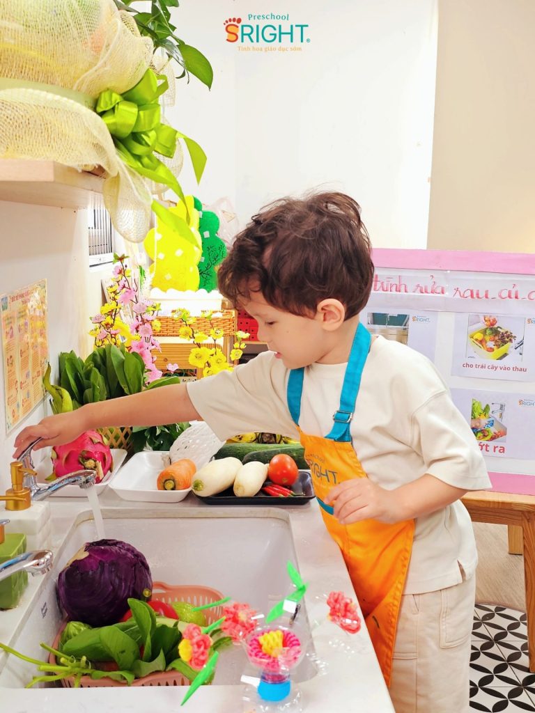 Tại SRIGHT Preschool, chúng tôi tin rằng những thói quen tốt và sự tự lập của trẻ nên được nuôi dưỡng từ những việc nhỏ nhất. Tiết học về chủ đề “Rửa rau củ quả đúng cách” của lớp Country tuần này là một phần quan trọng trong lộ trình giáo dục sớm, giúp các con tiếp cận với những bài học thực tế đầy thú vị và bổ ích.