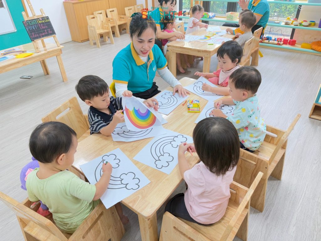 Trong không gian của một ngôi trường mầm non song ngữ hiện đại, mỗi hoạt động nhỏ đều là cơ hội để trẻ bồi đắp các kỹ năng sống nền tảng. Qua hoạt động tô màu những bức tranh thiên nhiên, các bé lớp Home đã được cô giáo hướng dẫn cách cầm bút màu đúng cách, rèn luyện sự khéo léo của đôi tay và khả năng tập trung cao độ. Cảm giác hào hứng khi tự tay hoàn thành tác phẩm của mình không chỉ giúp trẻ tự tin hơn mà còn nuôi dưỡng thẩm mỹ nghệ thuật. Sự kết hợp giữa giáo dục trí tuệ và thực hành vận động tinh giúp con phát triển toàn diện, sẵn sàng cho những hành trình khám phá lớn hơn trong tương lai.
