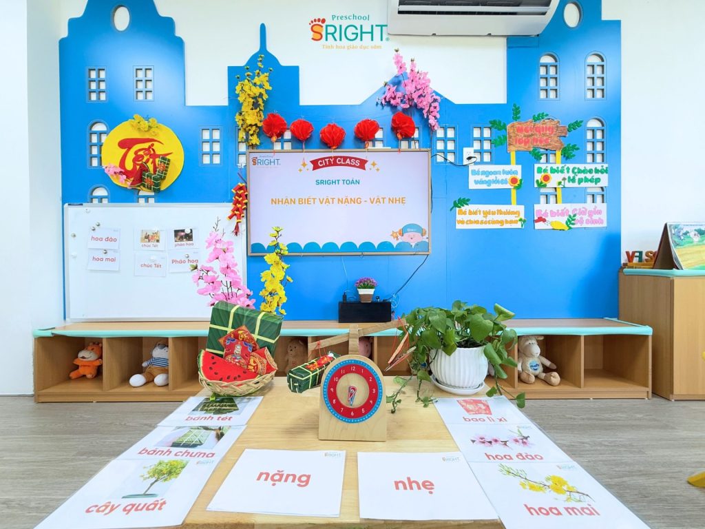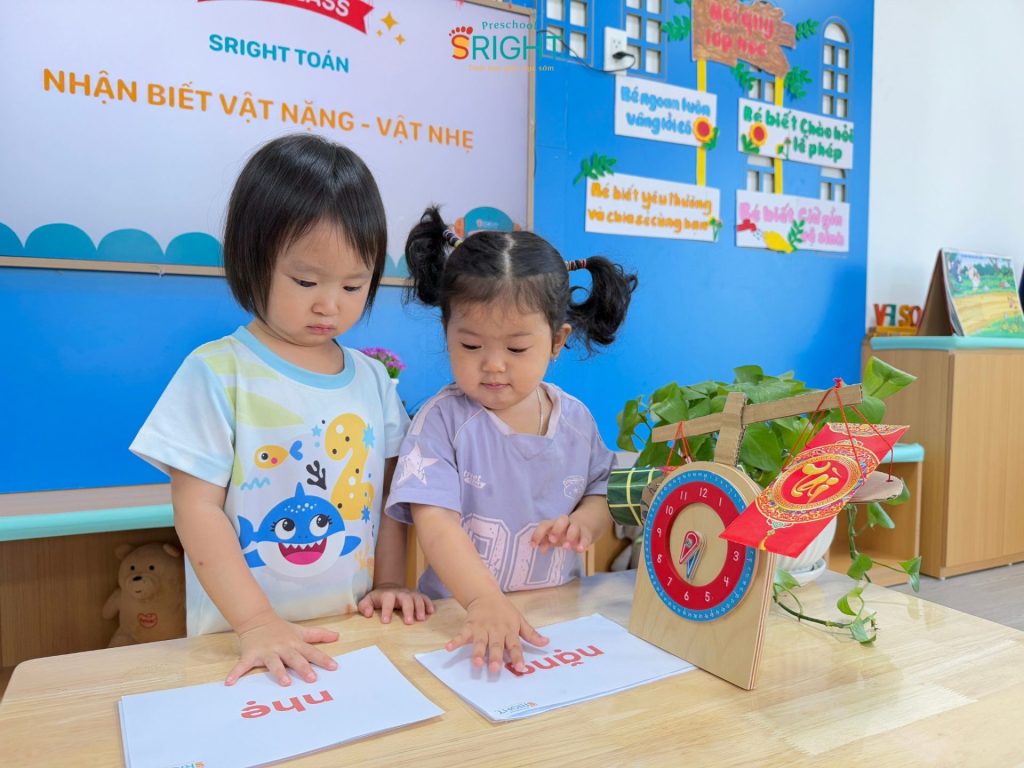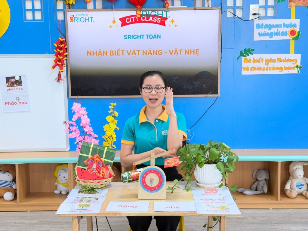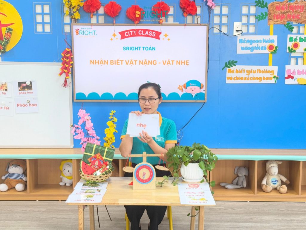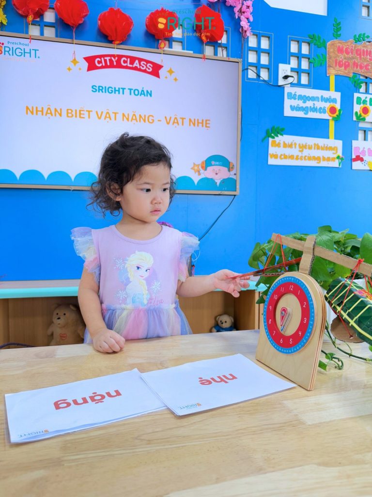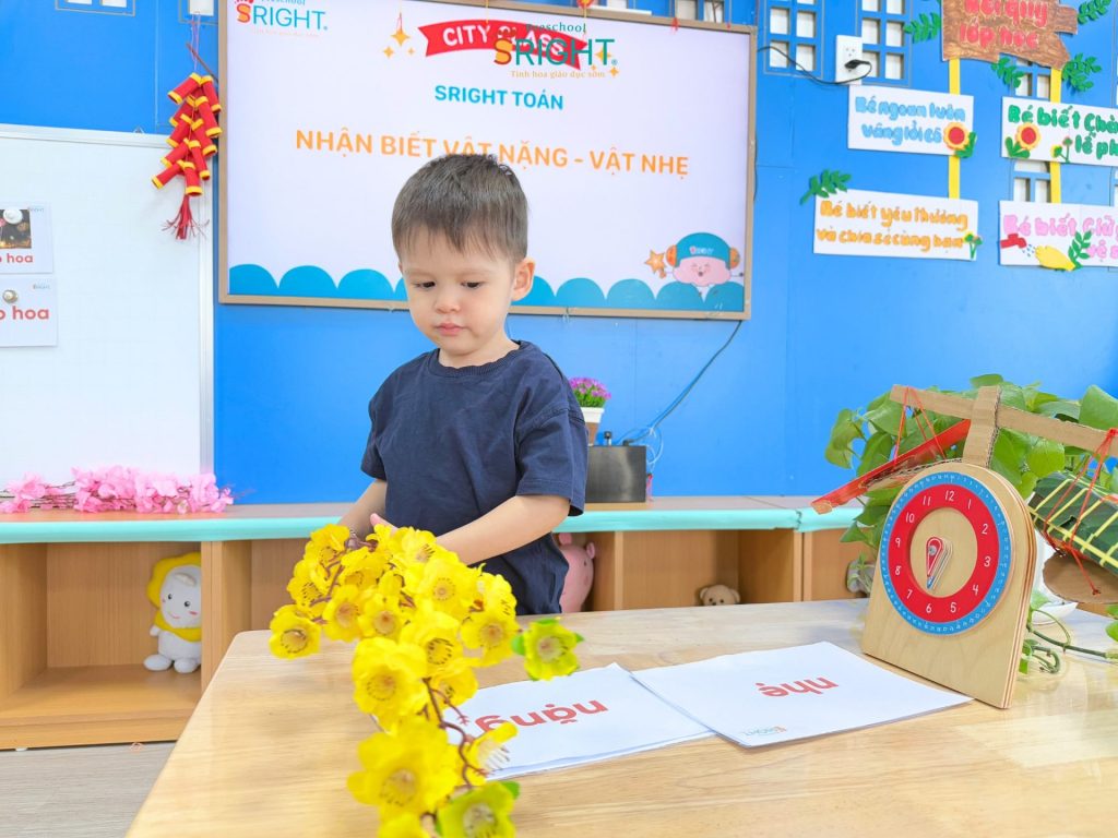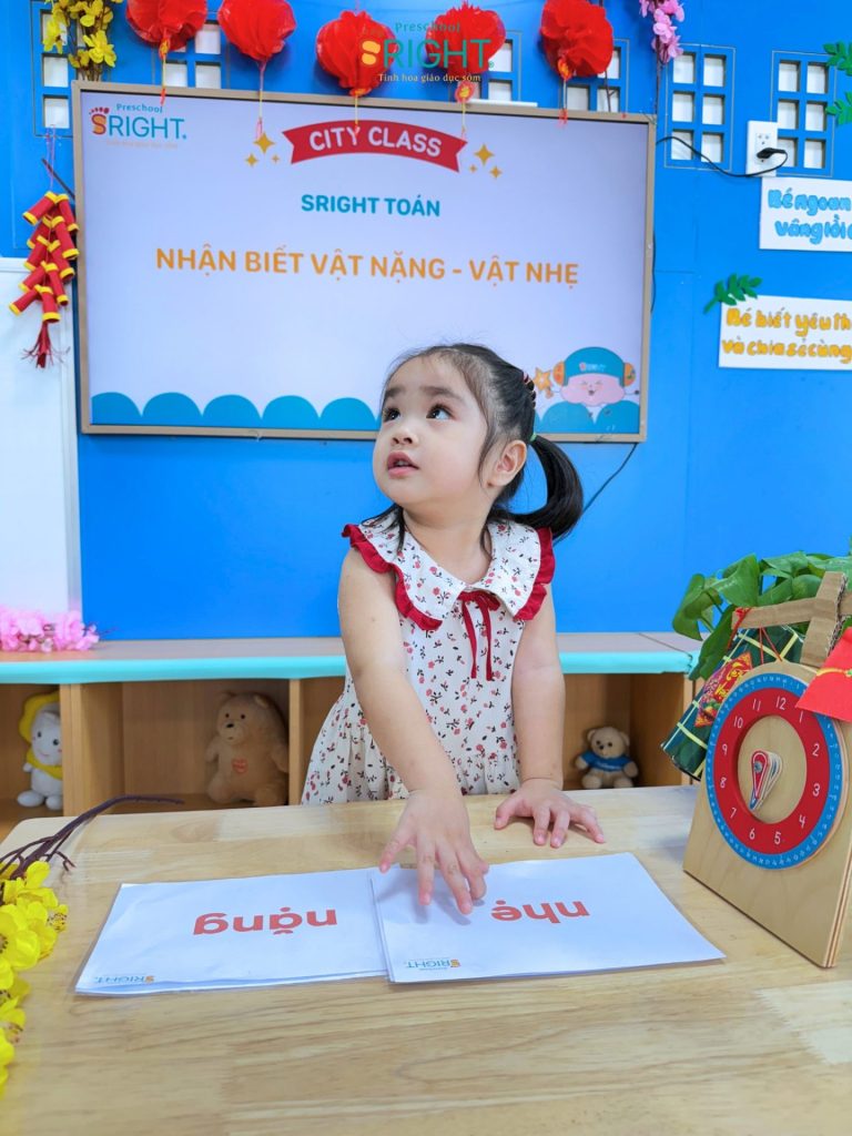 Sright Preschool luôn nỗ lực biến những con số và khái niệm trừu tượng thành những trải nghiệm thực tế đầy thú vị cho trẻ. Tại ngôi trường mầm non của chúng tôi, tiết học Toán học với chủ đề “Nặng – Nhẹ” hôm nay không chỉ là một giờ học lý thuyết mà là một hành trình khám phá đầy ắp tiếng cười của các bạn nhỏ lớp City. Đây là minh chứng rõ nét cho lộ trình giáo dục sớm hiện đại, nơi trẻ được khuyến khích phát triển tư duy logic thông qua việc nhìn, chạm và cảm nhận thế giới xung quanh một cách tự nhiên nhất.