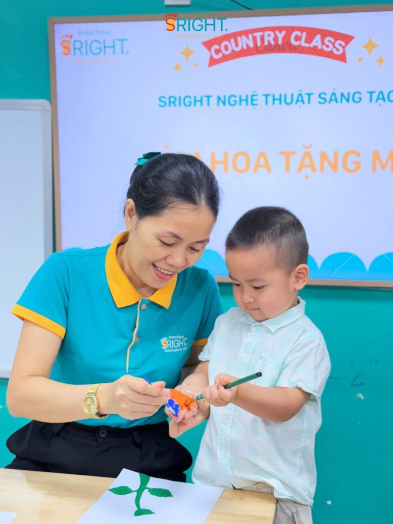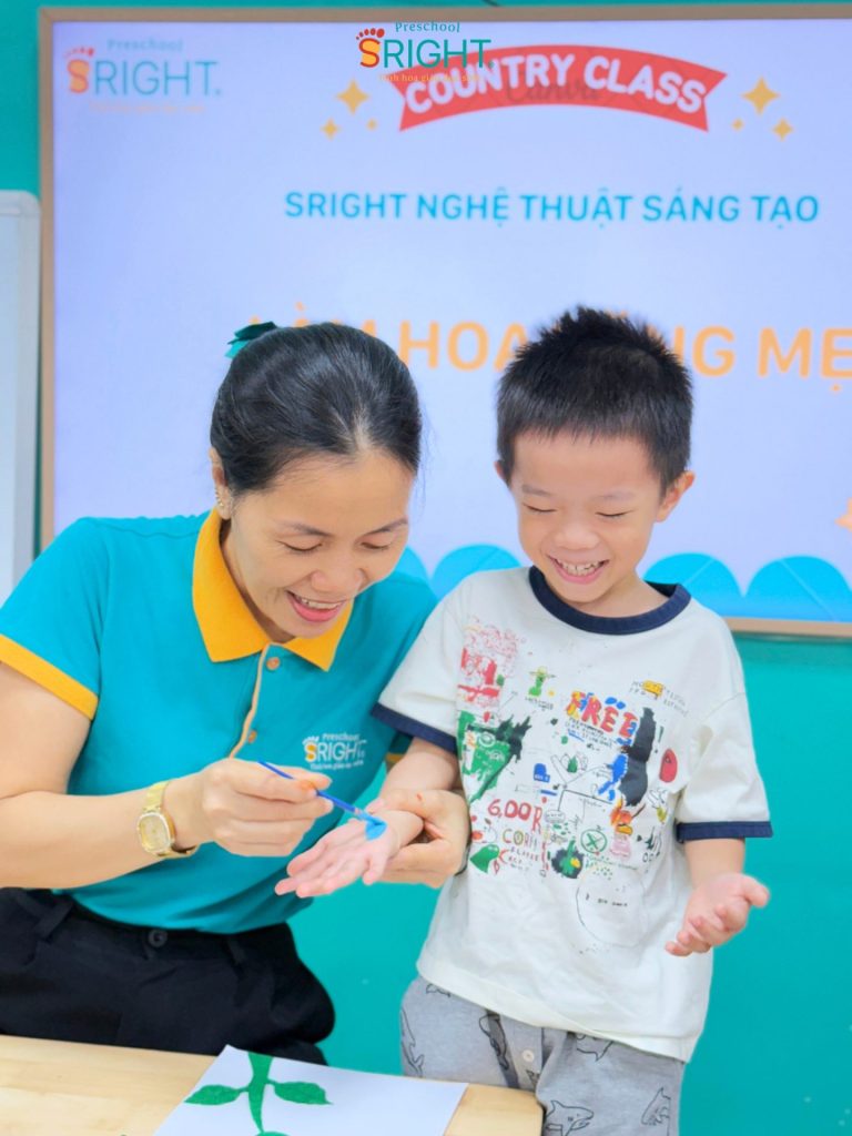 Sright Preschool tin rằng giáo dục không chỉ là truyền thụ kiến thức mà còn là hành trình nuôi dưỡng những trái tim biết yêu thương và sẻ chia. Tại ngôi trường mầm non của chúng tôi, tiết Nghệ thuật sáng tạo chào mừng ngày Quốc tế Phụ nữ 8/3 đã trở thành một không gian ngập tràn cảm xúc. Thông qua hoạt động làm hoa từ chính bản tay mình, các SRIGHTers lớp Country đã bước vào một lộ trình giáo dục sớm đầy nhân văn, nơi mỗi sắc màu in dấu trên giấy đều là một lời nhắn nhủ ngọt ngào, giúp trẻ học cách trân trọng những người phụ nữ tuyệt vời nhất trong cuộc đời mình.