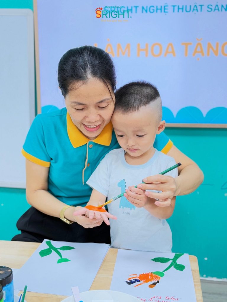 Hành trình khôn lớn tại Sright Preschool luôn đan xen giữa những bài học trí tuệ và những bài học về tâm hồn. Là một trường mầm non Thủ Đức uy tín, chúng tôi cam kết mang đến một môi trường nơi mỗi ngày đến lớp đều là một kỷ niệm đẹp, giúp trẻ phát triển toàn diện cả về tư duy lẫn cảm xúc. Ba mẹ hãy cùng ngắm nhìn những khoảnh khắc đáng yêu khi các SRIGHTers tự tay làm hoa tặng mẹ để thấy rằng, với Sright Preschool, mỗi món quà nhỏ bé đều mang trong mình một sức mạnh lớn lao của tình yêu thương và sự trưởng thành.