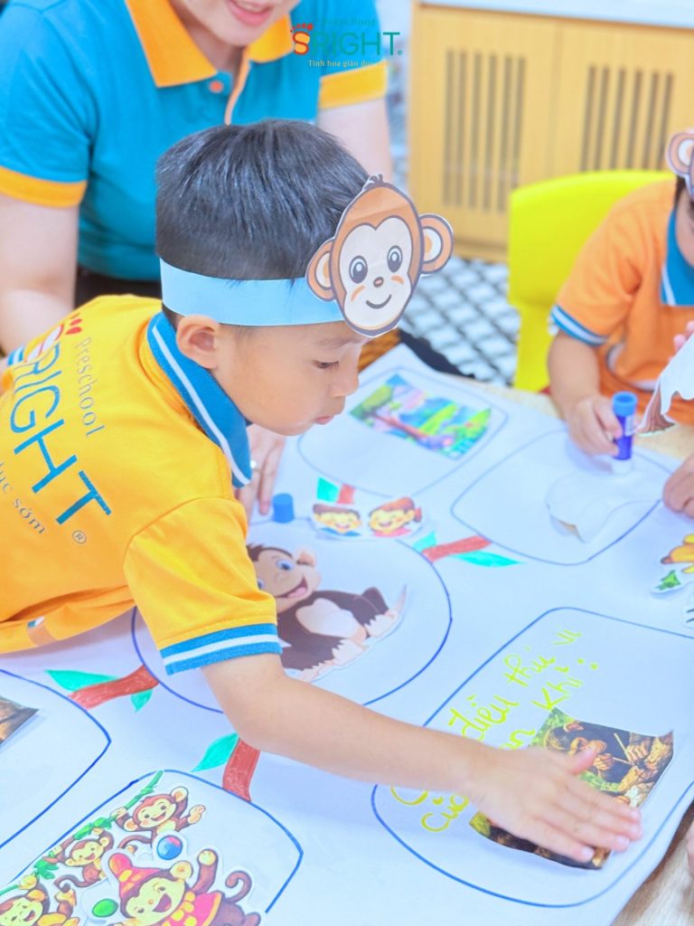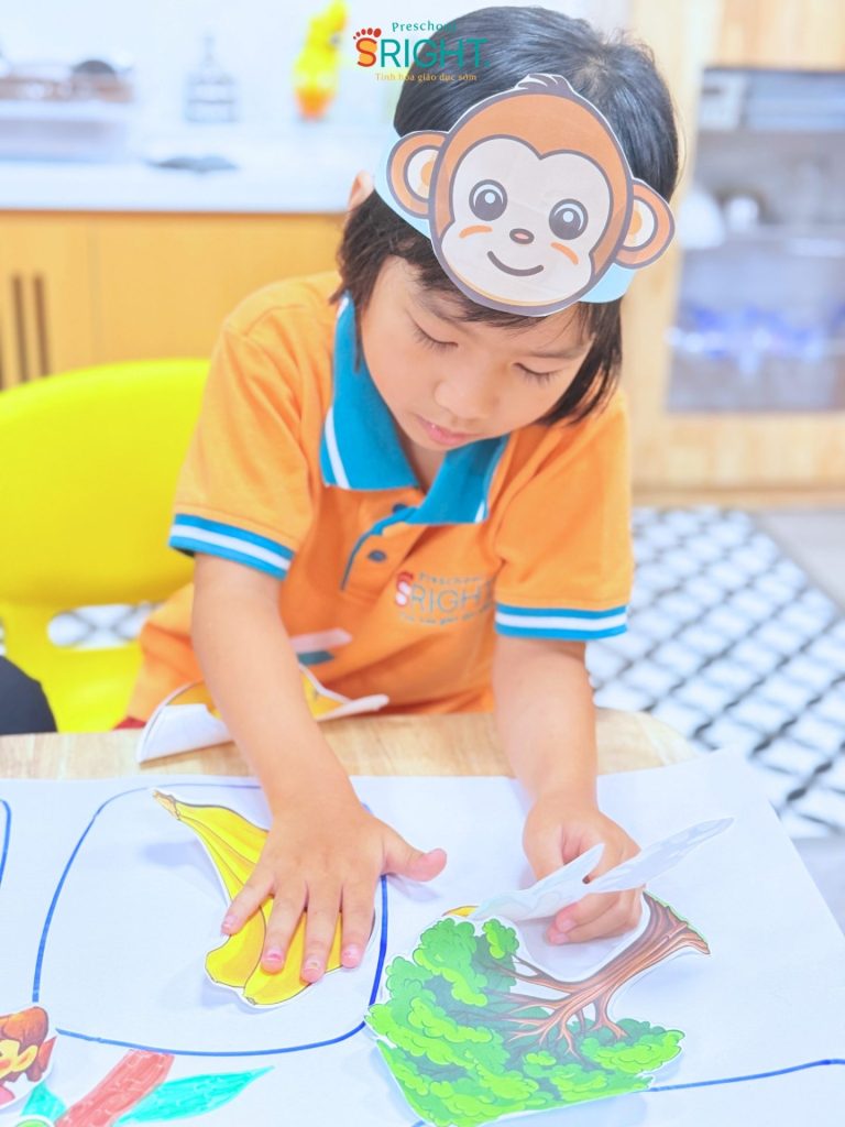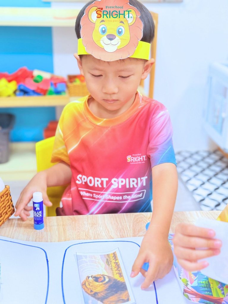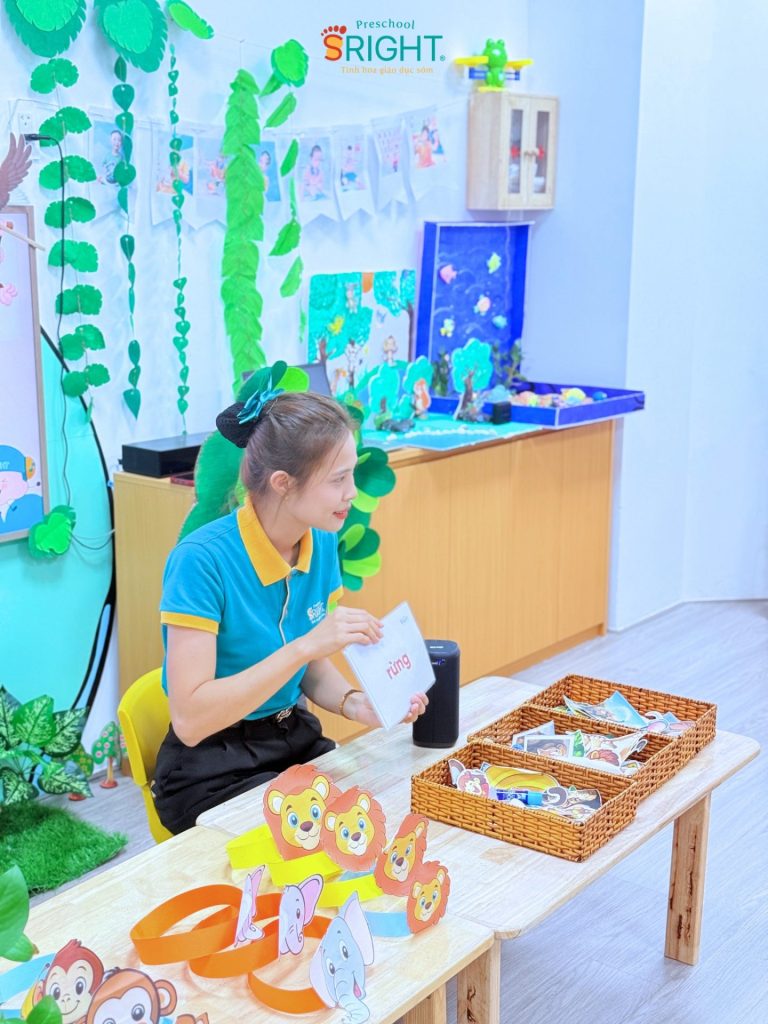 Tại trường mầm non Thủ Đức – Sright Preschool, chúng tôi đặc biệt chú trọng phương pháp kích hoạt não phải bằng cách sử dụng các học liệu trực quan, sinh động và đầy màu sắc. Trong tiết học Show & Tell, việc lắng nghe cô giáo gợi mở về những “người bạn” rừng xanh giúp trẻ hình thành các liên kết neuron thần kinh chất lượng thông qua hình ảnh. Khi trẻ đắm mình vào thế giới tự nhiên gần gũi, khả năng ghi nhớ nguyên mảng và tư duy sáng tạo được phát triển tối ưu. Những hình ảnh về muông thú, cây cỏ không chỉ là kiến thức mà còn là chất xúc tác để trẻ dệt nên những câu chuyện mang đậm dấu ấn cá nhân.