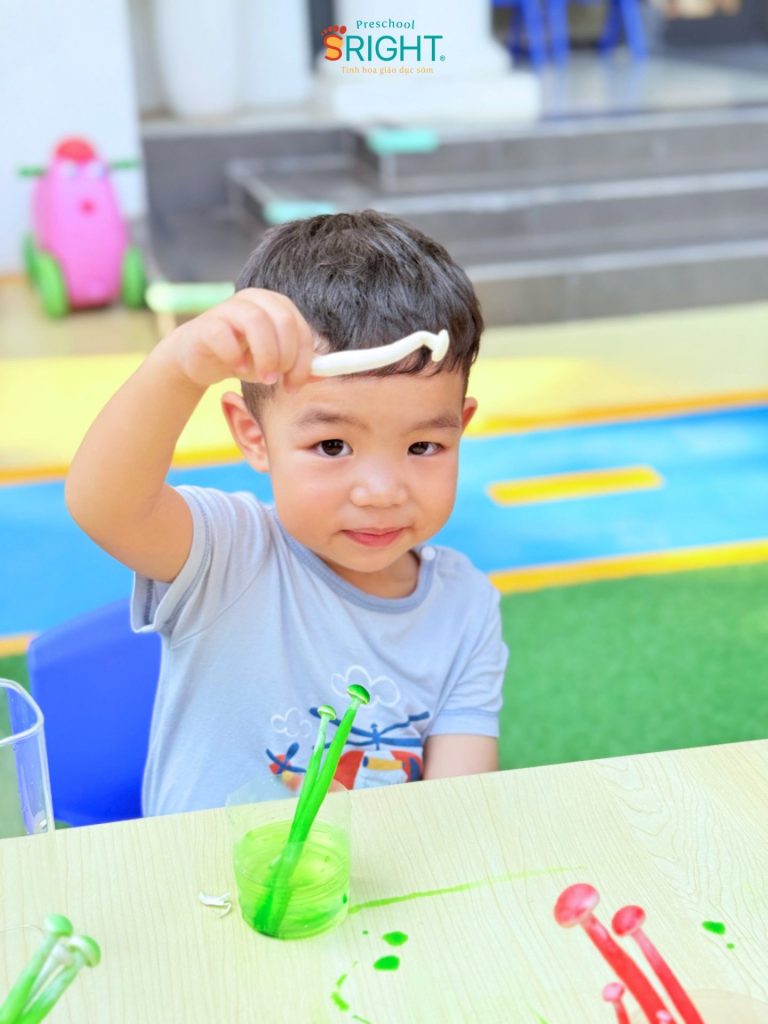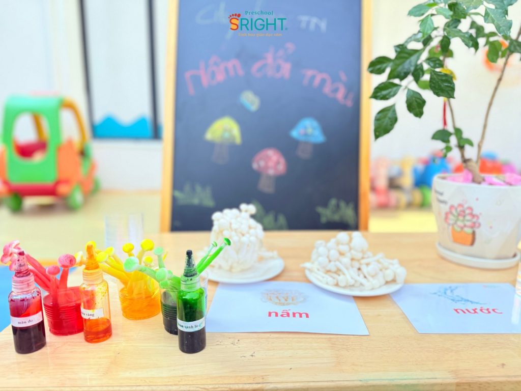 Sright Preschool luôn tin rằng mỗi đứa trẻ đều mang trong mình tố chất của một nhà khoa học tài năng, luôn khao khát khám phá những điều kỳ diệu từ cuộc sống. Tại ngôi trường mầm non của chúng tôi, tiết Khoa học hôm nay đã mang đến một trải nghiệm bất ngờ mang tên “Nấm đổi màu” dành riêng cho các SRIGHTers lớp City. Đây là một phần quan trọng trong lộ trình giáo dục sớm, nơi những thí nghiệm trực quan sinh động giúp trẻ hiểu về sự vận động của tự nhiên, từ đó nuôi dưỡng đam mê học hỏi và đặt nền móng cho tư duy phản biện ngay từ những năm tháng đầu đời.